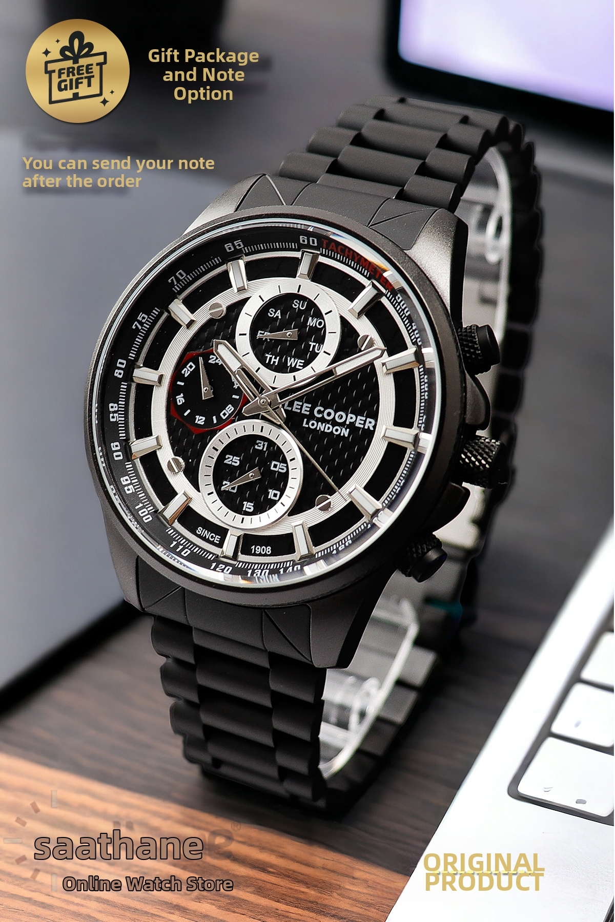 ساعت مچی مردانه اصل چندکاره تمام مشکی با تقویم