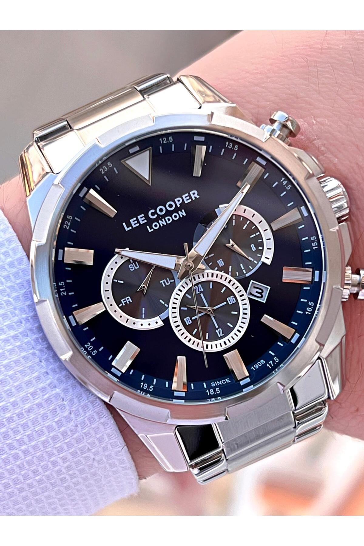 ساعت مچی آنالوگ مردانه نقرهای با صفحه آبی سرمهای