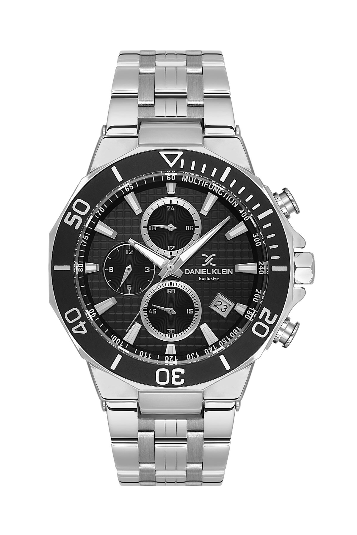 ساعت مچی مردانه نقرهای رنگ، صفحه مشکی – بند فلزی شیک، ۲ سال گارانتی